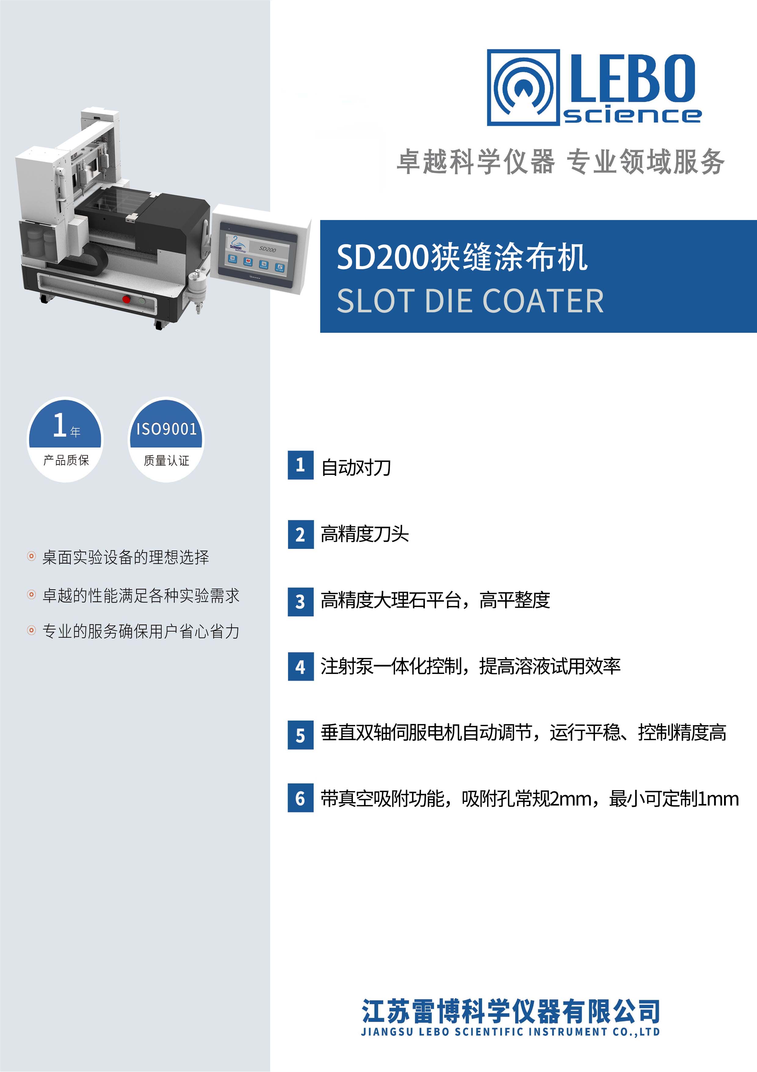 雷博科儀狹縫涂布機是一種用于制備高均勻度涂膜的關鍵設備,其成膜質量主要受基材移動速度和膠液補充速度的精確控制所影響。該設備配備了高精度的涂液模頭,能夠根據預設參數以恒定的速度在基材表面進行往復運動。在涂布過程中,基材被平整地固定于經過特殊處理的平面板上,通過保持基材移動速度與膠液供給速度的穩定匹配,顯著提高了涂膜厚度的均勻性和一致性,厚度偏差可控制在微米級別。
